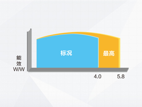 采用專業(yè)的水路設(shè)計,全系列平均能效比高達(dá)4.0(可高達(dá)5.8)。 |